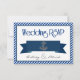 Cartes RSVP Marine Bleu & Blanc pour mariage nautique - faites correspondre les invitations et plus sur cette page.Complimentez votre thème mariage nautique avec ces invitations qui présentent des rayures bleues et blanches, une zone de texte bleu marine décorative avec une ancre grise élégante et des lettres fantaisistes. Ces cartes RSVP sont paramétrées sur un stock de carte de base de haute qualité; cependant, peut passer à la droite ci-dessus à des types de stock plus fantaisistes. Chaque RSVP est livré avec une enveloppe blanche ajustée. Voir le faire-part de mariage correspondant ci-dessous pour les détails de conception. Conseils pour Customiser vos cartes RSVP de mariage Ce style permet une réception de mariage sous forme de buffet. Si vous avez besoin d'un RSVP 2 ou 3 plats, faites défiler vers le bas pour trouver les produits disponibles. Cliquez sur le bouton personnaliser ci-dessous la démo de la carte RSVP du mariage ci-dessus pour changer la police, la couleur ou la taille du texte à ce que vous préférez. Si vous êtes satisfait du style de police, de la couleur du texte et des tailles, vous pouvez utiliser la fonction personnalisée à droite de la démo pour simplement modifier les informations de démonstration à vos détails personnels de mariage. Assurez-vous de regarder la démo après avoir modifié les détails (la démo change automatiquement après avoir modifié le texte, la taille ou les couleurs de police). La démo vous donnera alors une preuve de votre invitation après avoir effectué les changements. Cliquez sur le bouton loupe au-dessus de la démo RSVP pour obtenir une preuve complète. Vous pouvez également cliquer sur chaque image (avant et arrière) pour vérifier chaque côté après avoir effectué les modifications. Un autre conseil est de cliquer sur le bouton design au-dessus de la démo pour zoomer pour voir plus de détails et obtenir un meilleur aperçu des couleurs et de la décoration du design. Assurez-vous de vérifier chaque côté de la carte avant d'ajouter à votre panier pour le retirer en suivant les conseils ci-dessus.