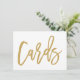 Impression mariage qui dit "Cartes" en or des deux côtés.