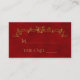Ce design élégant, appelé Red and Gold Peacock Mariage indien, a un arrière - plan rouge. Sur le devant de l'invitation il y a un paon doré avec un effet parties scintillant. Vers le bas est un motif de défilement de ligree or pour mettre en évidence le nom du couple en or. Le dos a un arrière - plan rouge avec votre texte en or. Cet ensemble a des invitations, enregistrer les cartes de date, les cartes de réponse, les cartes de remerciement, les cartes de numéro de table, les étiquettes de vin, les programmes de mariage, et beaucoup d'autres articles de papeterie mariage de jour, les faveurs et les cadeaux à coordonner. Tous les éléments sont imprimés sur nos produits de haute qualité, ils n'incluent pas d'or, de bijoux, de gaufrage ou d'autres éléments textiles. Tous les dessins sont copyright Noteable Expressions, Inc. Tous droits réservés.