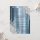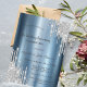 Un design moderne, chic et glamour avec des gouttes de paillettes argentées sur fond bleu métallisé.
