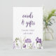 Pancarte Cartes & Cadeaux : Cette pancarte de cartes et cadeaux de fleurs sauvages violettes boho est 5x7 et parfaite pour mettre sur votre table de cartes de mariage et de cadeaux.