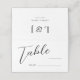 Une carte de place de numéro de table simple et minimale pour votre mariage, avec une police de script moderne avec le mot "table" et une ligne vide pour remplir le numéro de table et le nom de l'invité. Personnalisez le dos de la carte avec les noms de la mariée et du marié, et la date du mariage.