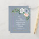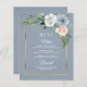Cartes de menu à Mariage couleur bleu-bleu-bleu-rose-bleu-bleu-foncé - sont dotées d'un arrière - plan bleu-aquarelle avec cadre doré taillé dans l'eucalyptus et la verdure avec des éléments floraux en gris/blanc, bleu-poussiéreux et rose/pêche-rousse. Afficher la collection correspondante sur cette page pour rechercher les produits correspondants