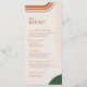 Cartes de menu bohèmes modernes avec des formes d'arche. La couleur principale de la carte de menu est beige, avec des formes d'arche en vert foncé, rouille et couleurs terracotta. Suivant les tendances modernes, ce menu sera sûrement un détail frappant sur la table.