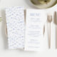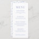 Elevez les détails de votre réception de mariage avec ces cartes de menu mariage rustique fleuris de bleu clair et capricieux. Plongez vos invités dans une expérience culinaire d'inspiration botanique avec le charme délicat de ces cartes de menu raffinées. Parfait pour ajouter une touche de sophistication à votre célébration mariage rustique.