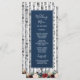 Cartes de menu de mariage bleu marine et burgundy avec bouleaux - illustrées de bouleaux aquarellés avec des roses, des pivoines et de la verdure dans des nuances de rose blush, Marsala, burgundy, bleu marine et plus.