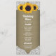 Cartes de menu de mariage tournesol toile de jute et dentelle - comportent un fond de toile de jute rustique de campagne imprimé et de dentelle avec des tournesols.