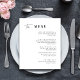Ajoutez un raffinement intemporel à votre journée spéciale avec nos cartes de menu pour dîner mariage noir et blanc. Parfaites pour les mariages, les cravates noires élégantes et les réceptions modernes, ces cartes de menu présentent un design monochrome classique qui convient à un large éventail de thèmes et de lieux. Que vous soyez l'hôte d'une grande fête dans la salle de bal, d'une réunion en plein air intime ou d'un mariage de ville chic, ces cartes de menu offrent un moyen élégant de présenter vos options de repas soigneusement organisées. Conçues pour les couples qui apprécient l'élégance et la simplicité, elles s'ajoutent parfaitement à votre décor de table mariage.