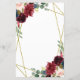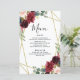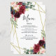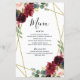 Le design présente un cadre géométrique imprimé de couleur or avec des éléments floraux dans les tons bordeaux, rouge et rougissant sur la verdure, l'eucalyptus et les fleurs. Design dispose également d'une disposition de typographie facile à utiliser. Si vous avez besoin d'aide ou d'articles correspondants, veuillez me contacter.