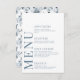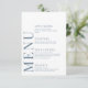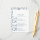 Améliorez le charme de votre célébration mariage moderne romantique avec cette carte de menu sophistiquée et polie. Doté d'un motif complexe orné de fines fleurs bleues et grises poussiéreuses, ce magnifique design est surélevé par la personnalisation, mettant en valeur les noms de la mariée et du marié à l'arrière.