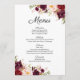 Nos cartes de menu marsala, bourgogne et mariage à la floraison de vin ont une formulation entièrement personnalisable. Utilisez l'outil "Personnalisez ce modèle" de Zazzle pour saisir les informations sur la cérémonie du mariage. Si vous avez besoin de modifier le placement des zones de texte, la couleur de police ou la taille de la police cliquez simplement sur le bouton "Cliquez pour customiser plus loin" pour changer ces choses. N'oubliez pas de consulter notre large sélection d'articles de coordination en parcourant la collection de Mariages floraux Marsala !