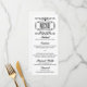 Belles cartes de menu vintage classique mariage avec des plats tourbillonnant noirs et blancs.