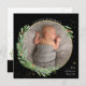 La conception de carte de Noël à thème de fêtes avec des végétaux de Noël comporte des végétaux peints à la main à l'aquarelle dans une couronne de cercle doré sur fond noir. Votre image est encadrée simplement et le design est accentué de taches dorées à l'aquarelle et de baies de houx assorties. #Noël #Fêtes #CartesDeNoël