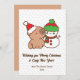 Cartes à plat pour Noël capybara & snowman et votre choix de mots et d'arrière - plan enneigé.