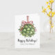 Ces cartes de Noël sont ornées d'un portrait aquarelle d'une boule de faux orteil accrochée par un arc à ruban dénudé rouge et blanc.