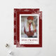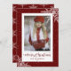 Cartes de Noël avec titre de calligraphie et cadre photo rouge enneigé avec flocons de neige. Personnalisez facilement ces cartes rouges de Noël avec votre image et votre nom de famille.