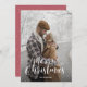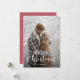 Cartes de Noël personnalisées en rose, avec une photo recouverte de neige et un titre en lettres à la main sur le devant et un arrière - plan rose avec de la neige à l'arrière. Personnalisez facilement ces cartes de Noël avec votre image et votre nom de famille.