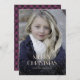 Le buffle pourpre neige plaid photo carte de Noël avec de la neige sur une photo sur le devant. Un buffle violet plaça un arrière - plan à l'arrière. Personnalisez facilement cette carte photo de Noël avec votre photo, texte et le nom de famille. Créez une photo magique Joyeuse carte de Noël pour votre famille et vos amis cette période de fêtes.