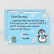 Flocons de neige blancs et bleus mignons, avec un manchot festif adorable lançant une boule de neige et une lettre personnalisée du Père Noël sur le devant. Le dos a un espace pour que votre enfant écrive sa liste de souhaits de Noël.