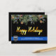 Envoyez Joyeux voeux de Noël à vos amis, aux entreprises' , aux autres services de police et à votre communauté avec cette carte de Noël unique de la police de Ligne Bleue Bleue - Noir et bleu moderne avec des feuilles saints et des baies et élégant script en or. Personnalisez avec le logo, le message et le service de police. DROIT D'AUTEUR © 2020 Judy Burrows, Black Dog Art - Tous droits réservés. Cartes de Noël du service de police budgétaire