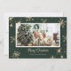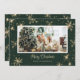 Carte de Noël verte avec des flocons de neige mousseux sur un arrière - plan vert.