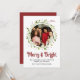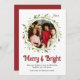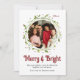 Merry & Bright Family Photo Wreath Christmas Cards Cartes de fin de année dispose d'une aquarelle de fleurs d'hiver en rouge et vert entourant votre photo préférée avec le texte "Merry & Bright" et votre message personnalisé ci-dessous dans la typographie de script moderne. Conçu par ©Evco Holidays www.zazzle.com/store/evcoholidays