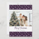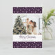 Cartes de Noël personnalisées en violet avec des étoiles et un magnifique titre de script. Personnalisez facilement ces cartes de Noël violet étoilées avec votre image et un nom de famille.