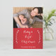 Cartes de photo de Noël pour le premier Noël de bébé rouge et blanc avec texte modifiable et photo de famille - vous pouvez ajouter votre photo, nom de famille et année.