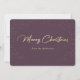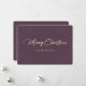 Cartes de Noël personnalisées violet et or avec un titre de calligraphie faux or sur un arrière - plan violet clair. Personnalisez facilement ces cartes de Noël simples avec votre nom de famille et votre texte.
