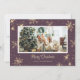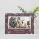 Cartes de Noël violettes avec des flocons de neige mousseux sur un arrière - plan violet.