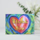 Message de carte "Merci". L'art de la peinture présente un coeur rouge coloré avec des reflets de blanc et d'or. Le coeur est souligné en bleu avec un arrière - plan vert doux. Cette peinture de coeur est un hommage à garder l'espoir dans votre coeur quand les tristes bleus vous entourent mais poussent vers le renouveau vert. oeuvre d'inspiration de Laurel Latto pour l'association DonnaBellas Angels. La mission de l'association est de fournir un art inspirant pour le bien-être en santé mentale. La devise est "La médecine guérit le corps, l'art guérit l'âme". Pour en savoir plus, consultez le site DonnaBellasAngels.org.