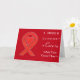 La carte de voeux ou de notes présente l'image d'un ruban de sensibilisation au coeur rouge. La carte indique : "J'espère et je soutiens une cure pour ()" Ajoutez vos propres mots ou message optionnels à la carte de voeux pour les cartes pour notes de sensibilisation à l'art de l'ange personnalisé ! Vous pouvez également supprimer le texte d'une carte de notes d'art uniquement. Un ruban rouge de sensibilisation signifie le soutien au sida/VIH, aux maladies cardiovasculaires (cardiaques), aux accidents vasculaires cérébraux, à l'alcoolisme et à la toxicomanie, au cancer du sang, au MADD (Mères contre la conduite ivre), au DARE (formation en résistance à l'abus de drogues), à l'hémophilie (projet Red Flag), au secours en cas de catastrophe, au syndrome de Marfan, à l'épidermolyse Bullosa (EB), à l'hypertension artère (hypertension (hypertension), ressure), et l'amour pour en nommer quelques-uns. Les cartes de voeux d'art de peinture de coeur rouge peuvent être customisées de messages personnalisés pour faire une grande prise de conscience cause des cartes d'art pour les collecteurs de fonds, les cadeaux de sensibilisation, ou d'autres événements spéciaux. Donnez cette carte d'art comme un ruban de sensibilisation pour toute occasion.