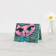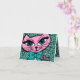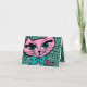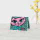 Faites un peu de folie avec ces cartes de notes amusantes avec un arrière - plan empreinte de léopard bleu et un chaton rose mignon dans un arc bleu. Elle dit MEOW. PinkInkArt original !