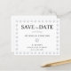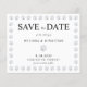Invitez vos amis et votre famille à célébrer votre jour spécial avec ces cartes "save the date" de mariage élégantes avec empreinte de patte et paillettes argentées. Ces invitations de mariage pas chères ne comprennent pas d'enveloppes. Consultez notre collection pour des enveloppes A6 assorties, ou notre option de cartes postales. Personnalisez avec vos noms et toutes les informations de votre mariage. Cette collection d'empreintes de pattes sera un favori parmi tous les amoureux des chiens, des chats et des animaux. COPYRIGHT © 2020 Judy Burrows, Black Dog Art - Tous droits réservés. Cartes "Save the Date" à petit prix sans photo avec empreintes de pattes.