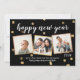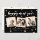 Envoyez de la joie pour la nouvelle année avec cette carte de collage de 3 photos élégante avec des confettis en faux or brillant. Comprend un motif assorti au dos
