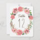 Cartes de numéro de table à plumes bohèmes aquarelle avec fleurs roses et bois de cerf. Collection créée par Colourful Designs Inc. Copyright 2015-2017