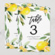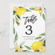 Cartes de numéro de table de mariage à l'aquarelle de citron