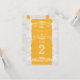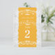 Cartes de numéro de table de mariage en dentelle jaune et blanc. Les articles assortis de cette collection sont disponibles.