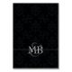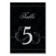 Cartes de numéro de table damassées noires, décoration rose en soie noire et monogrammes à l'arrière. Lorsque vous faites les numéros, changez le numéro et ajoutez les cartes à votre panier 1 par 1.