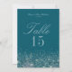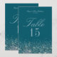 Cartes de numéro de table Paillettes Sarcelle et M