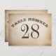 belle carte de numéro de table vintage avec design de ticket typographique