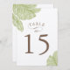 Ces cartes de numéros de table de mariage présentent des illustrations vintage de feuilles de palmier et une typographie élégante. Personnalisez-la pour changer le fond et l'adapter à vos couleurs de mariage ! Voir la papeterie supplémentaire pour coordonner tous les aspects de votre mariage :