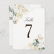 Cartes de numéros de table de la forêt avec des roses à l'aquarelle romantiques avec un fond à grain de bois sombre rustique. Collection créée par Colourful Designs Inc. Copyright 2015-2017