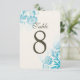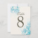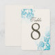 Élégantes cartes de numéros de table de mariage sarcelle ombrée personnalisables avec une belle impression florale. Collection créée par Colourful Designs Inc. Copyright 2014.