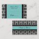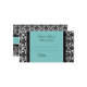 table mariage place des cartes de réglage dans élégant bleu turquoise, noir et blanc classique motif damassé floral classique, également disponible dans de nombreux produits mariages assortis, contactez-nous pour demander un changement de couleur ou un design personnalisé.