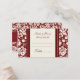 table mariage placer des cartes de réglage dans élégant rouge et blanc cassé motif classique floral damask, également disponible dans de nombreux produits mariages assortis, contactez-nous pour demander un changement de couleur ou un design personnalisé.