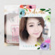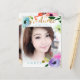 PixDezines photo de remise de diplôme avec aquarelle florale, renoncules et chrysanthèmes et police pinceau élégante en or faux. Ces cartes postales de save the date florales accentuées d'éclaboussures d'encre en or faux. Cliquez sur le bouton personnaliser pour éditer.