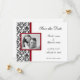 Cartes 'Save the Date' en damassé noir avec un cadre rouge autour de votre photo. Cartes formelles avec enveloppes incluses.