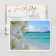 Cartes de PixDezines plumeria + plage, enregistrez la date avec une police de caractères manuscrite moderne amusante et vos photos de fiançailles au recto et au verso des cartes postales. Copyright © 2008-2018. PixDezines.com™ et PixDezines™ sur zazzle.com. Tous droits réservés.