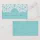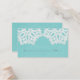 Simples et sophistiquées Cartes de Mariage en dentelle élégante avec un motif en dentelle blanche sur un arrière - plan en papier vintage bleu turquoise clair. Ces cartes d'escorte classiques et élégantes sont parfaites pour un mariage rustique. Sur ces cartes d'escorte élégantes et élégantes, vous pourrez y inscrire les noms et les numéros de table où chacun de vos invités sera assis à la réception. Cliquez sur le bouton "Customiser" pour trouver d'autres options de personnalisation.